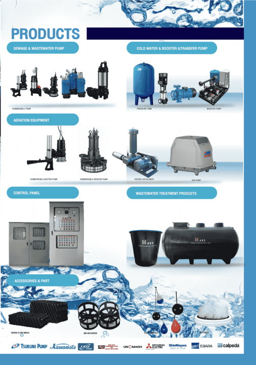 ปั๊มซับเมอร์ส ปั๊มแช่ดูดโคลน เครื่องเติมอากาศแอร์เรเตอร์บ่อบําบัด แอร์โบลเวอร์ ถังบำบัดน้ำเสียทรงแคปซูลขนาดใหญ่และอุปกรณ์ไฟฟ้าควบคุมปั๊ม โดยทีมงานวิศกรมืออาชีพและช่างเฉพาะทาง ด้วยความซื่อสัตย์ มีประสบการณ์กว่า 27 ปี ได้รับความเชื่อถือจากโครงการต่างๆ ทั่วประเทศไทยมาแล้วมากมาย